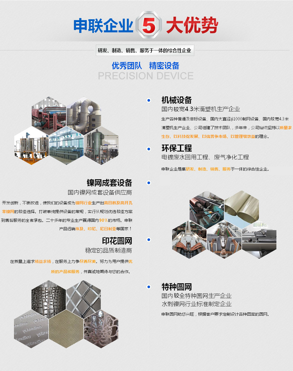 申聯企業(yè)是一家集機械設備、環(huán)保工程、鎳網生產成套設備、印染鎳網、特種鎳網等系列相關產品的研發(fā)、制造、銷售、售后服務于一體的綜合性企業(yè)。企業(yè)屬下有宜興申聯機械制造有限公司和宜興市申聯環(huán)保紡織器材廠有限公司。